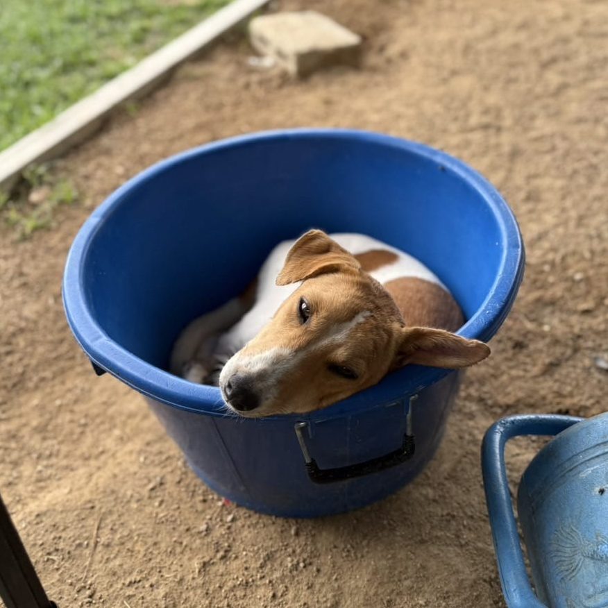 Sweet and affectionate, Ayr loves to be close to her people. She is playful, gentle, and loyal, always keeping an eye on what you are doing and following along when she can. Ayr is the perfect blend of cuddly and independent. She enjoys company but is also content finding a comfy spot to relax and enjoy the breeze. Her playful curiosity often takes her on little side adventures during walks, and she can sometimes be found exploring rice fields or splashing in a canal.