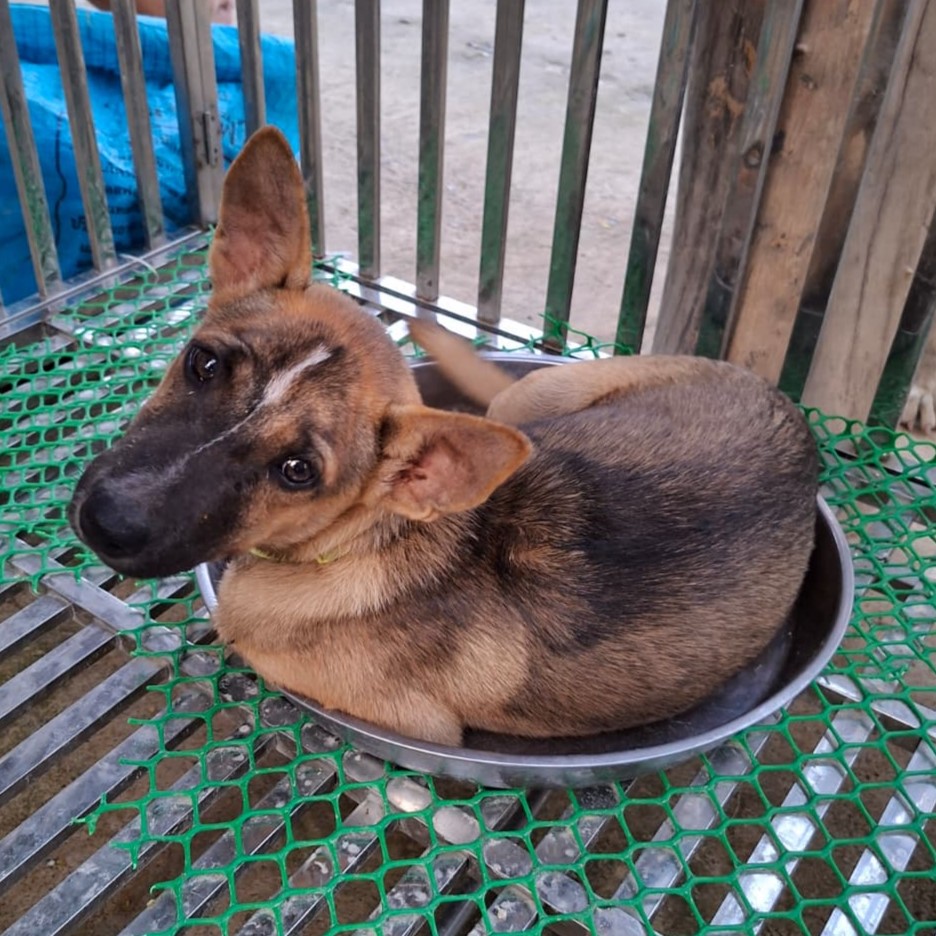 Jeut joined Baan Maa as a young pup with a bright personality and an easygoing nature. From the start, she showed everyone how adaptable and friendly she is. She loves to play with her friends, chase toys, and be part of the fun, yet she is also perfectly happy relaxing on her own when things quiet down.