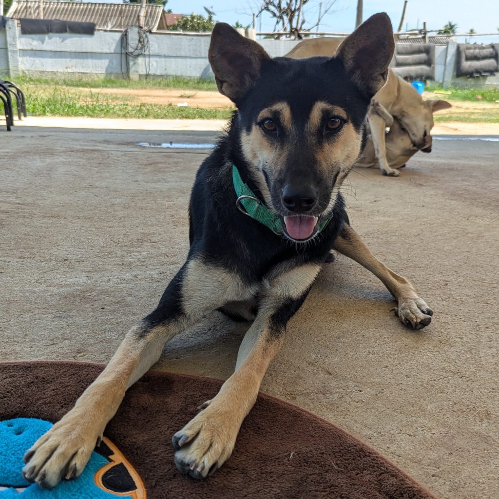 Barney has taken on a natural role as a mentor to the younger dogs. He helps new arrivals settle, shows them how to interact, and is often the first to guide nervous dogs into play. His gentle leadership and fun loving personality make him an invaluable part of the Baan Maa family. He is not just a dog in our care. He is one of the foundations the rescue was built on.