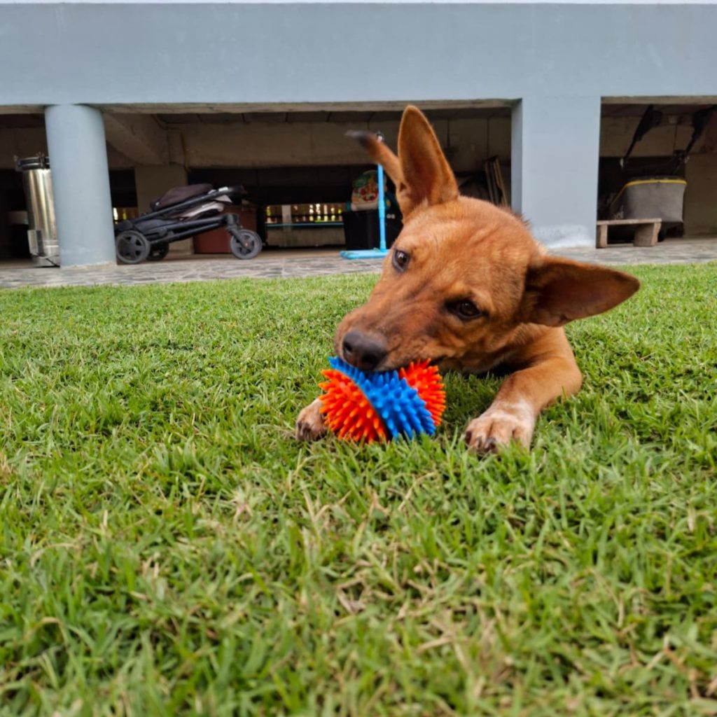 Biao was found on the side of the road at just five weeks old, frightened, hungry, and unsure of the world. Once she was safe and had time to settle, her real personality began to shine. She turned into a joyful, affectionate little dog who greets every day with excitement and curiosity. She loves people, children, and other dogs, and she has a naturally gentle way that makes her easy to bond with.