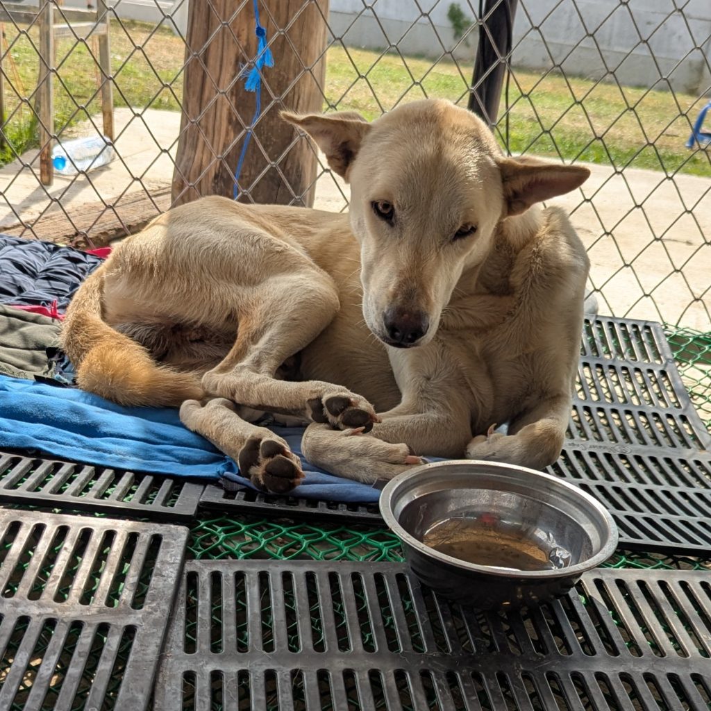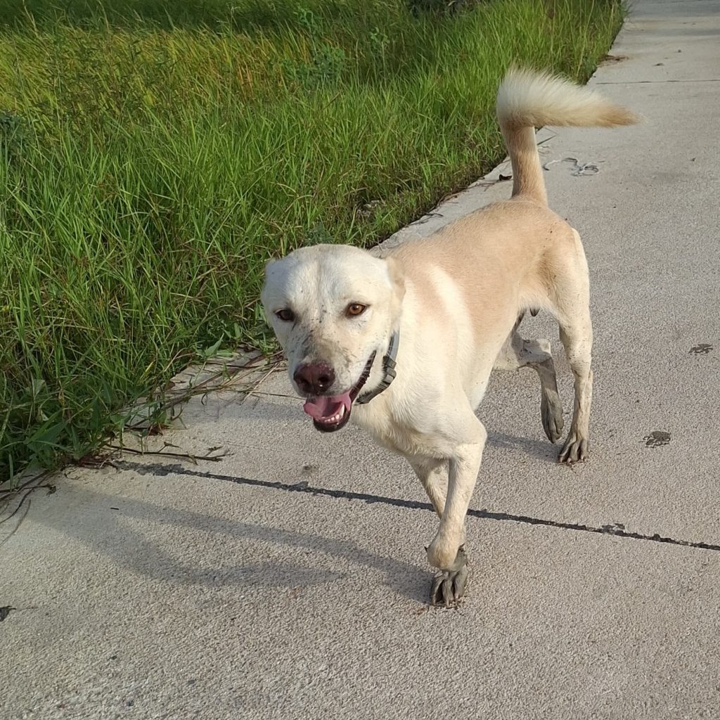 Champ arrived at Baan Maa after being hit by a car. His femur was dislocated and he faced a long and difficult recovery, yet his tail never stopped moving. Through surgery, physio, and months of careful rehabilitation, he met every challenge with patience and trust. Even on the hardest days, Champ greeted us with soft eyes and gentle kisses, showing the same kind nature that defines him today.